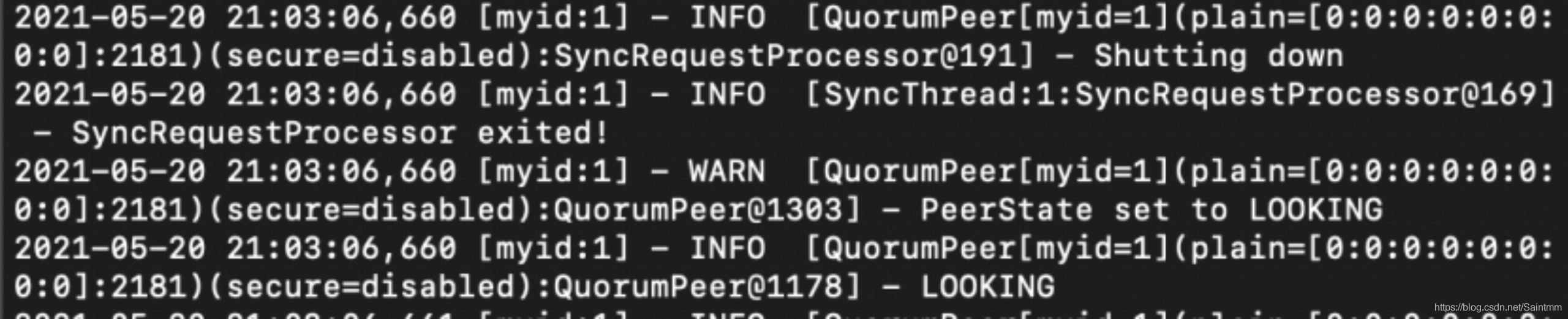 我们观察zookeeper01的日志发现,集群状态进入到了LOOKING状态: