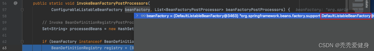 invokeBeanFactoryPostProcessors(ConfigurableListableBeanFactory,List<BeanFactoryPostProcessor>)方法中,传入接收到的入参beanFactory类型为DefaultListableBeanFactory: