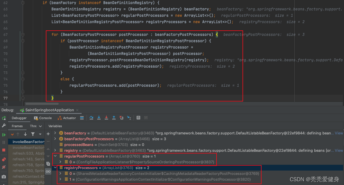 分类之后,regularPostProcessors有一个成员,registryProcessors中有两个成员。