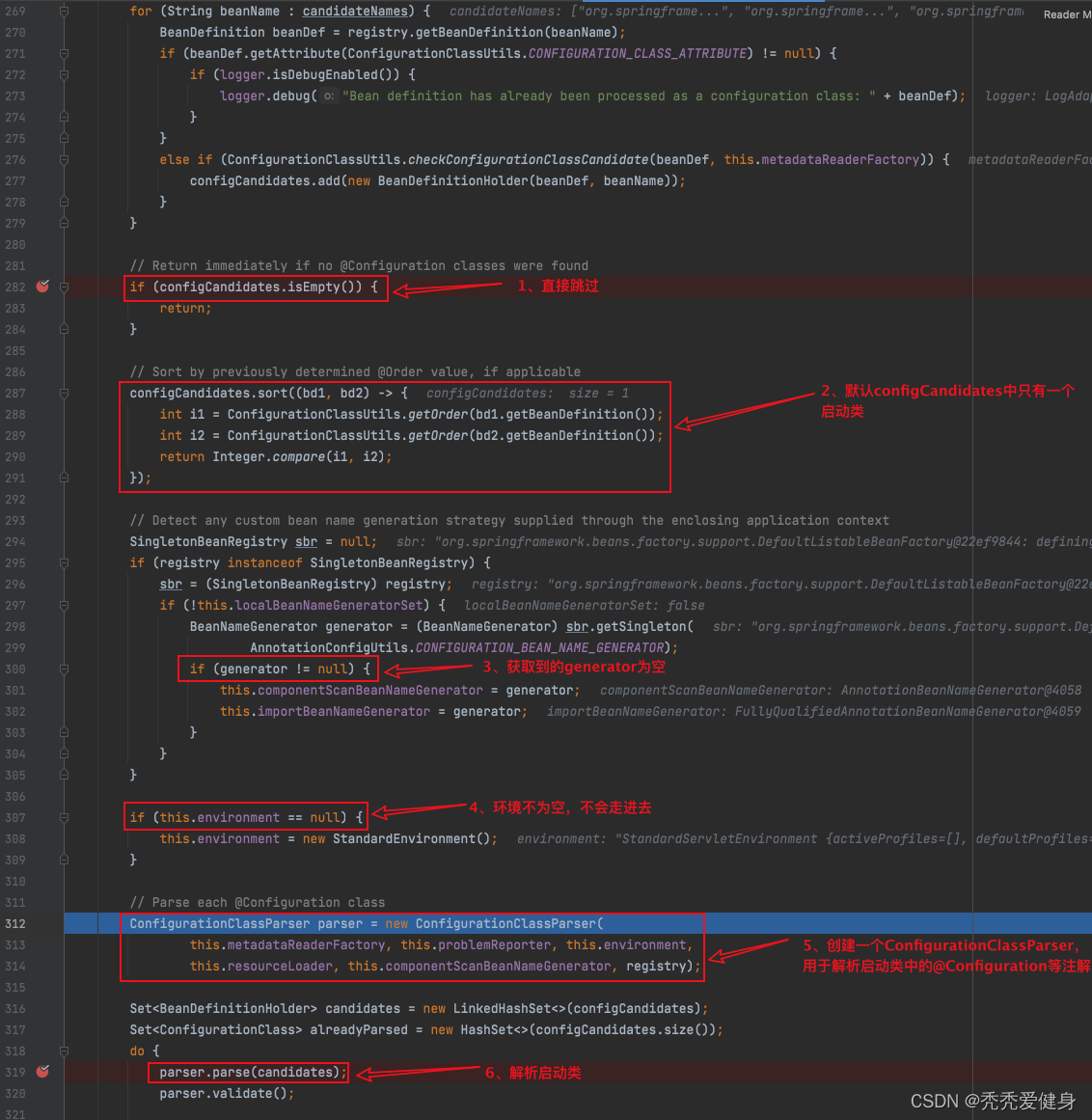 接着调用ConfigurationClassParser#parse()方法开始解析启动类进行应用程序的启动。
