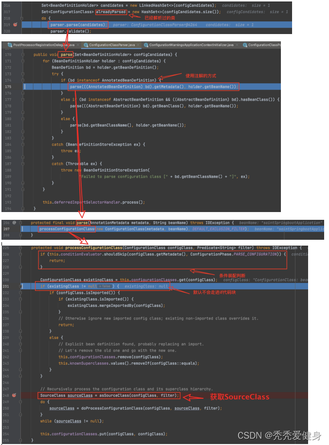 2> 获取到SourceClass之后,处理配置类和SourceClass: