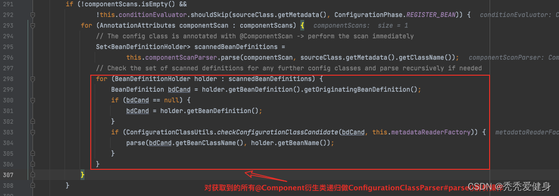 获取并注册完所有的@Component衍生类之后,在递归对这些类做解析。