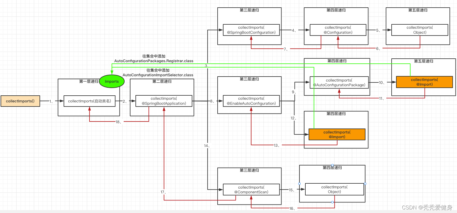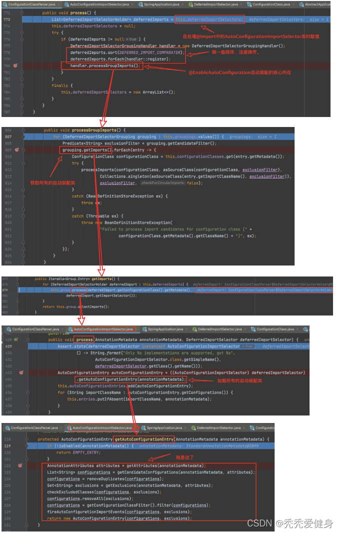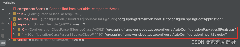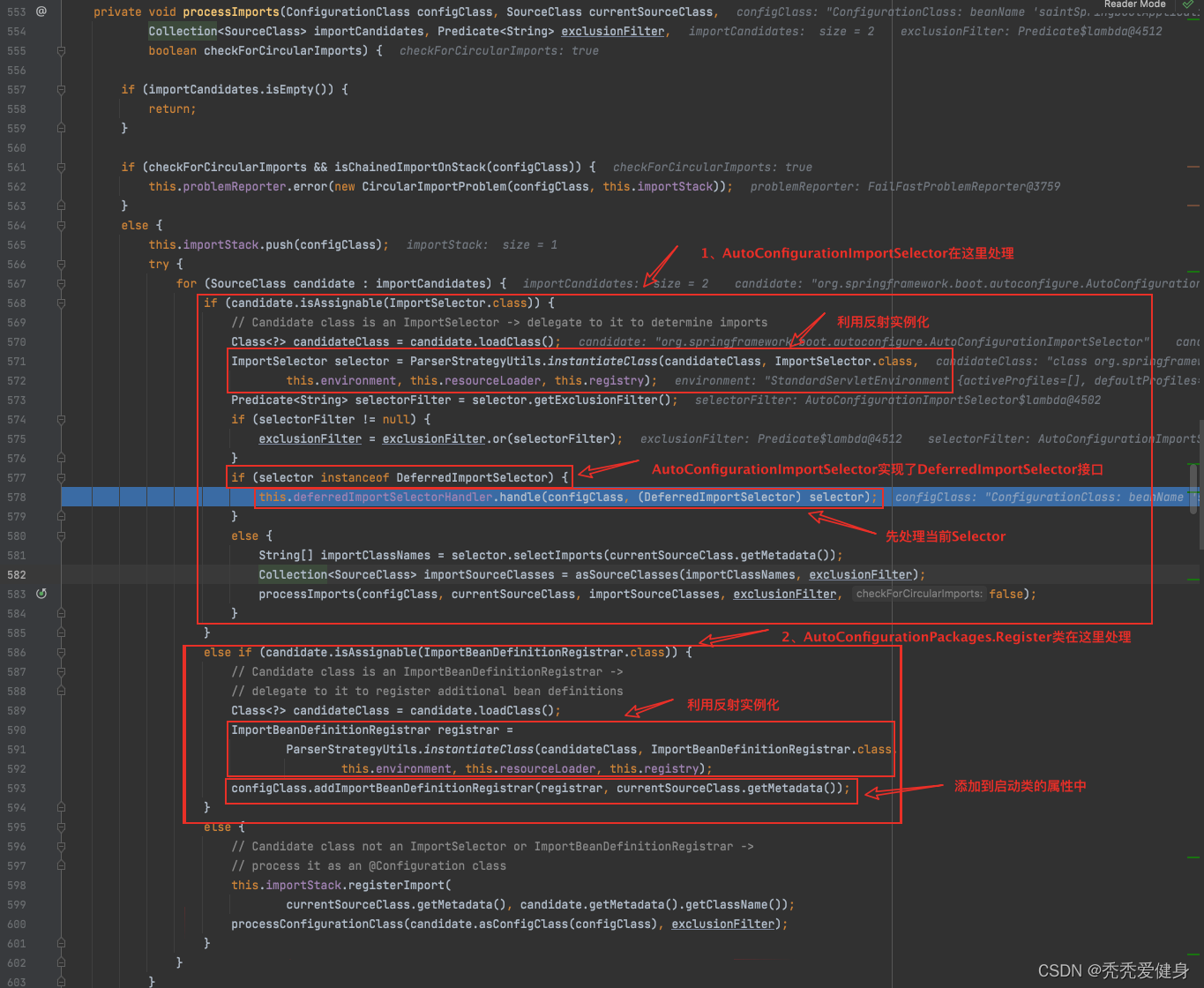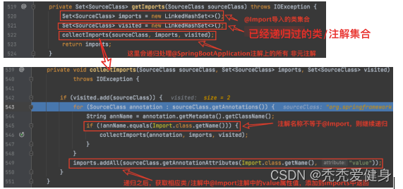 2> processImports()方法处理获取到的启动类中所有的@Import注解: