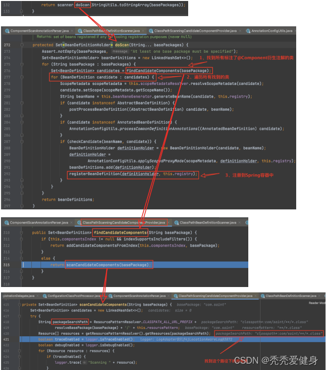 给ClassPathBeanDefinitionScanner制定完所有属性之后,会调用其doScan(String...)方法扫描basePackages目录下的所有标注了@Component衍生注解(比如:@Controller、@Service、@Repository)的类。