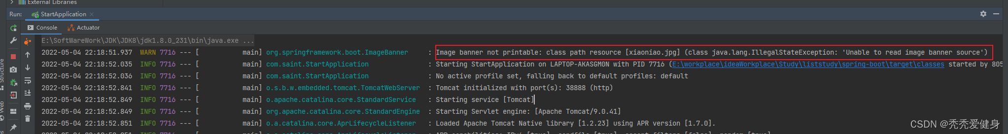WARN 7716 — [ main] org.springframework.boot.ImageBanner : Image banner not printable: class path resource [xiaoniao.jpg] (class java.lang.IllegalStateException: ‘Unable to read image banner source’)