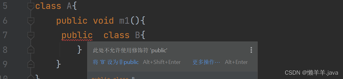class B{ //内部类B定义在A中的m1方法