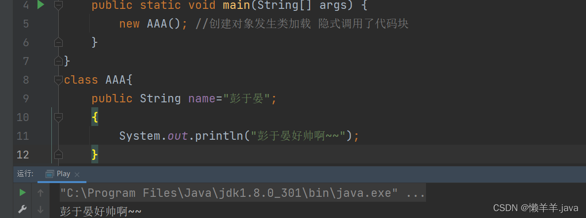 new AAA("彭于晏");//创建对象发生类加载 隐式调用了代码块
