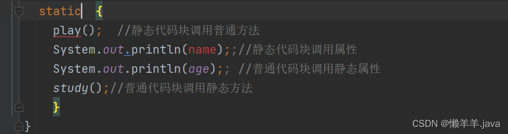 在上述代码基础上,把普通代码块前加上static修饰,调用普通成员的地方立马报错!