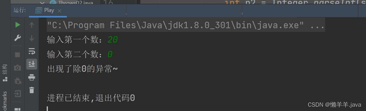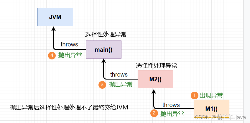 throws(抛出):在代码中理解成一种抛出难题的行为,它的作用是通过把异常抛给别的类或者方法让当前的部分不受该异常的影响