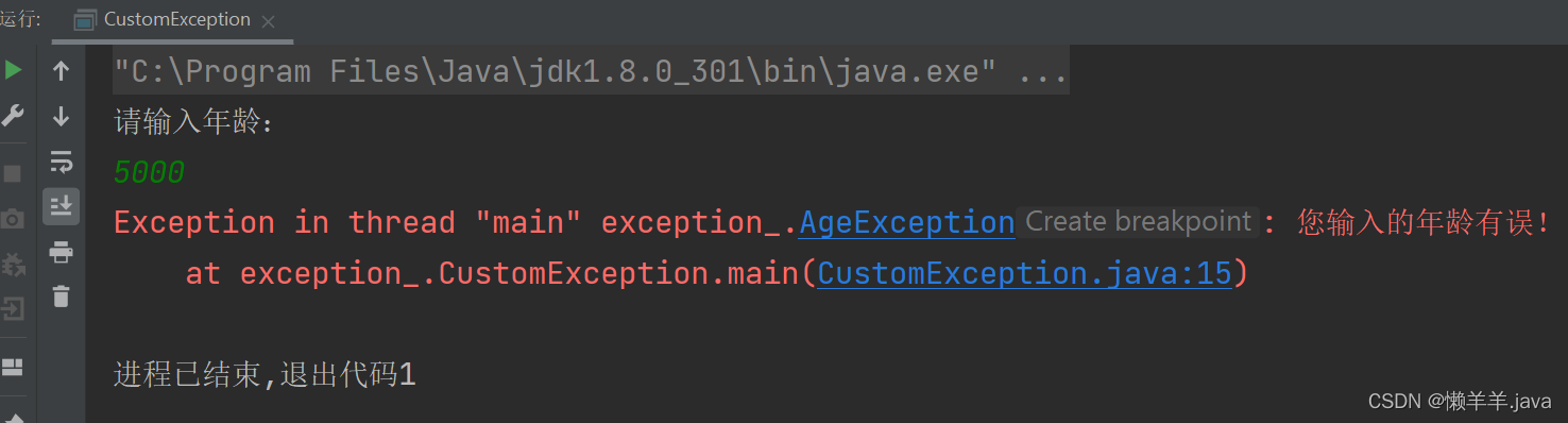 class AgeException extends RuntimeException{ //继承运行异常 便于处理