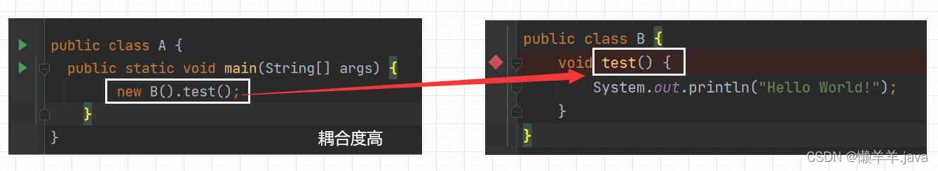 在项目开发中,对象之间的耦合度就是多个对象间的依赖性、关联性。对象之间的耦合越高,维护成本越高,因此对象的设计应使类和类之间的耦合最小