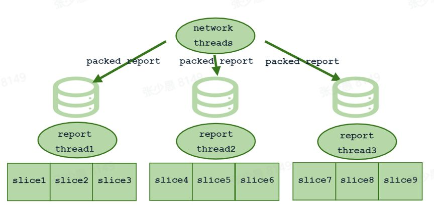 DanceNN 启动以后会首先进入安全模式,接收所有 Date Node 的块上报,完善 BlockMap 中保存的信息。当上报的 Date Node 达到一定比例以后,才会退出安全模式,这时候才能正式接收 client 的请求。所以接收块上报的速度也会影响 Date Node 的启动时长。DanceNN 这里做了一个优化,根据 BlockID 将不同请求分配给不同的线程处理,每个线程负责固定的 Slice,线程之间无竞争,这样就极大的加快了接收块上报的速度。如下图所示: