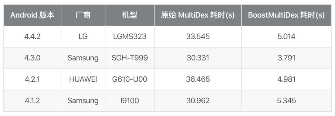 我们的 BoostMultiDex 方案,正是从这一点入手,从本质上优化 install 的耗时。