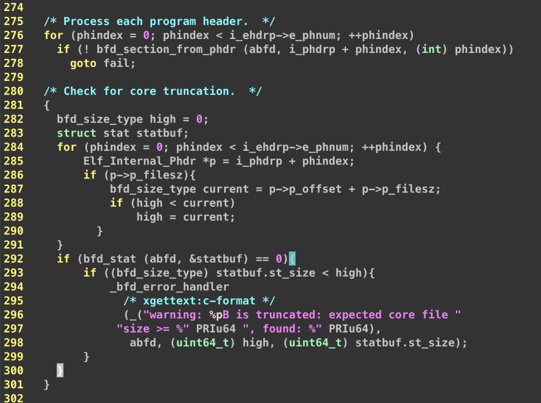 需要确定是 gdb 问题还是 kernel 吐 core 的问题。先从 gdb 开始查起,下载 gdb 的源代码找到报错的位置(为了方便阅读,源代码的缩进进行了调整)。