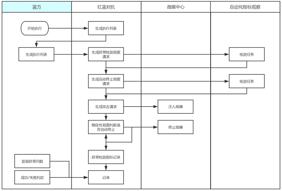 红蓝对抗一旦开启后,主要操作将由蓝方主导,除非发生预期外情况(这一般也意味着防守失败)或者需要操作预案开关,否则红方在此过程中,基本处于 stand by 状态。主要流程如下: