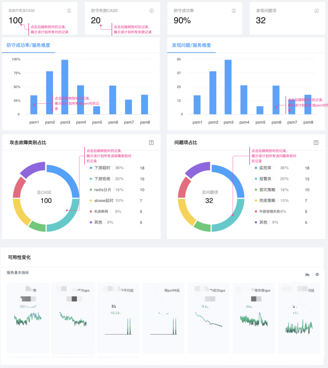在对抗结束后的复盘回顾是关键环节,通过将红蓝对抗过程中所记录的数据汇总。可清晰地看到对抗整体效果,一目了然地了解此次计划中目标业务系统的稳定性建设情况。