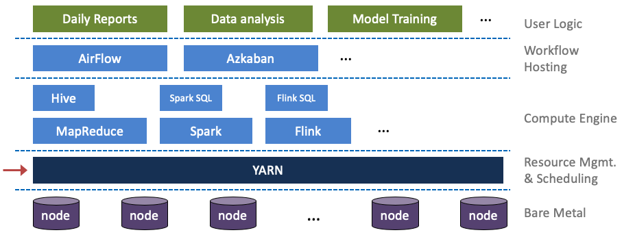 字节跳动的 YARN 承载了公司内的 批处理 / 流式 / 模型训练 三大场景,由于 YARN 天生是为批处理而设计的,很多地方与流式 / 模型训练场景并不匹配,为了给这些场景更好的体验,需要做一些定制工作。