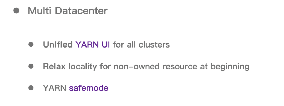 异地多活: 包括统一的 YARN Client 和 UI 等内容。