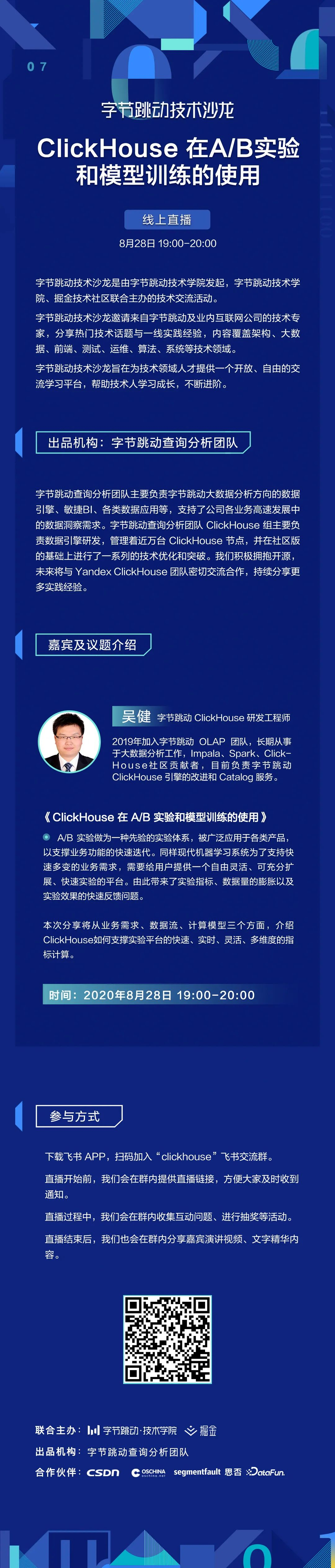若二维码过期,公众号后台回复:“clickhouse”,即可获取最新二维码。