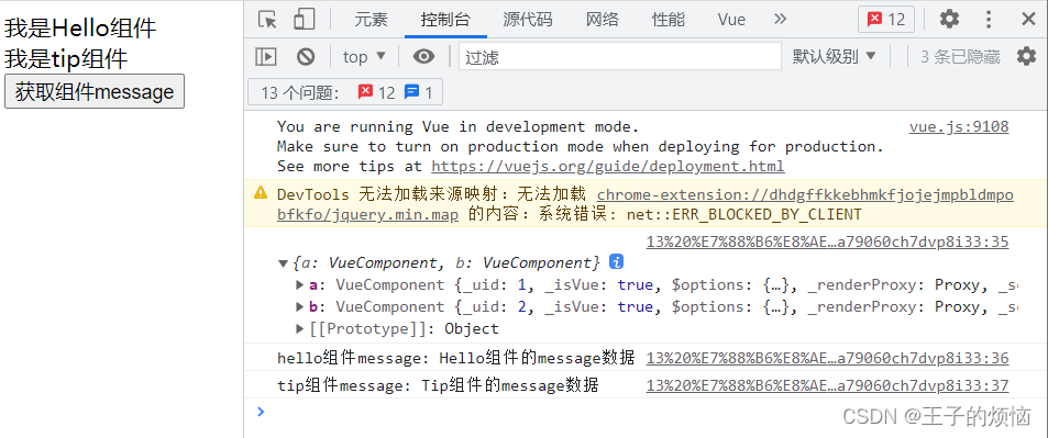 console.log('tip组件message: ' + this.$refs.b.message)