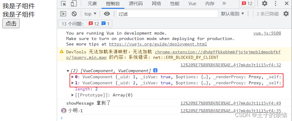 使用 $children 可以访问到子组件对象,如果有多个会返回一个数组对象,我们可以通过数组下标控制访问子组件的属性,方法等等