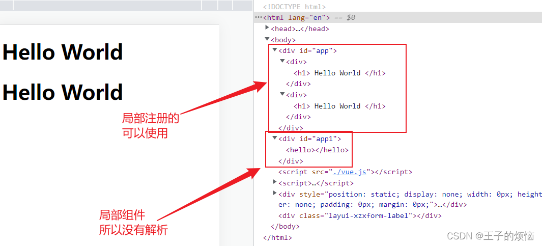 局部注册实在某个vue实例内部,通过配置项 components 配置,局部组件只能在注册它的 vue 实例下才可以使用