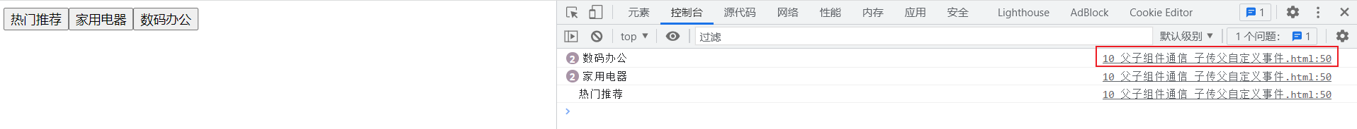 当子组件需要向父组件传递时,就要用到自定义事件了,之前学习的 v-on 不仅可以用于监听 DOM 事件,也可以监听组件间的自定义事件