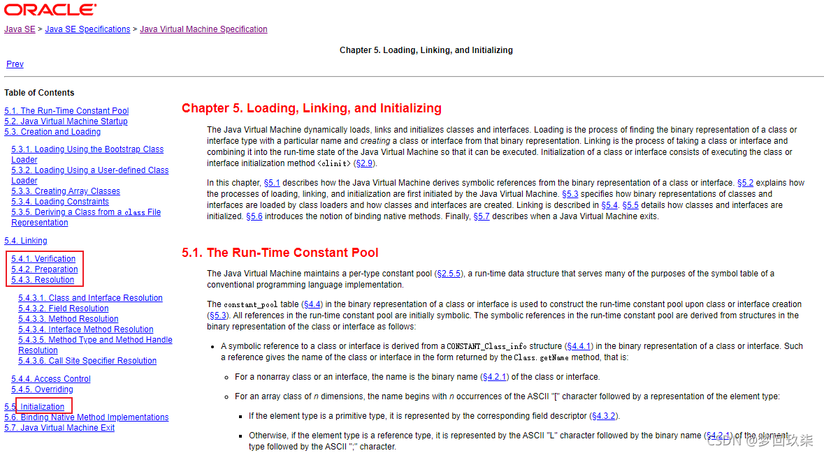 关于类的详细加载流程大家可以参阅官方文档:https://docs.oracle.com/javase/specs/jvms/se8/html/jvms-5.html