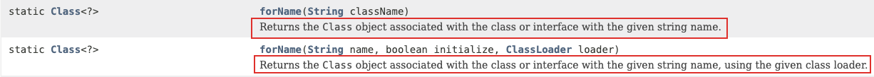 System.out.println("Class.forName() : " + userClass3.getName());