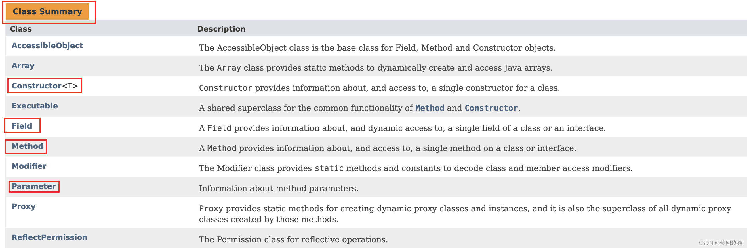 https://docs.oracle.com/javase/8/docs/api/java/lang/reflect/package-summary.html
