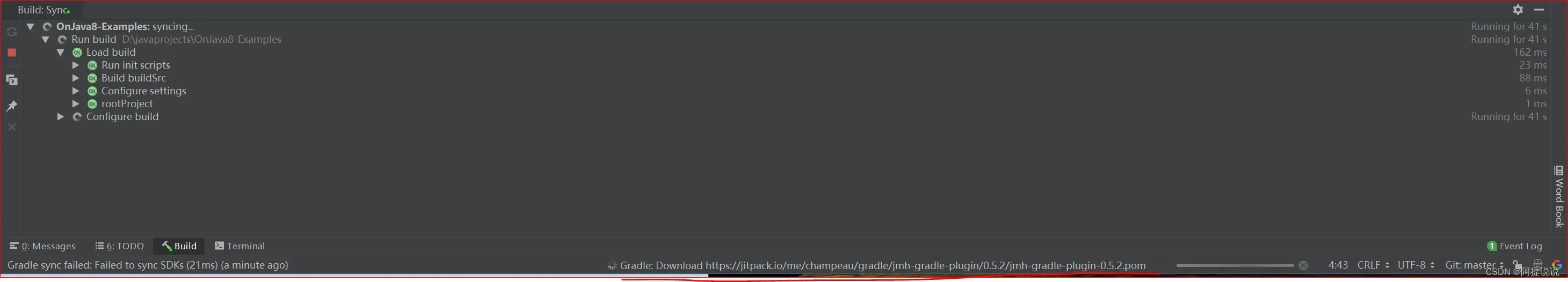 前段时间不是买了《On Java》嘛,想要跟着看,肯定要跑示例,随书的示例在GitHub上,布鲁斯自己的GitHub上。GitHub地址:https://github.com/BruceEckel/OnJava8-Examples