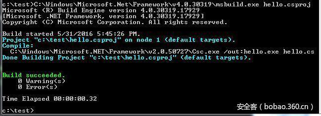 1 | C:\Windows\Microsoft.Net\Framework\v4.0.30319\msbuild.exe hello.csproj |