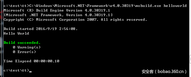 1 | C:\Windows\Microsoft.NET\Framework\v4.0.30319\msbuild.exe helloworld |