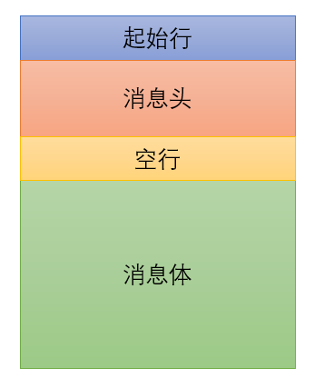 一般地,HTTP 协议格式主要分成四个部分:起始行、消息头、空行、消息体;如图所示。
