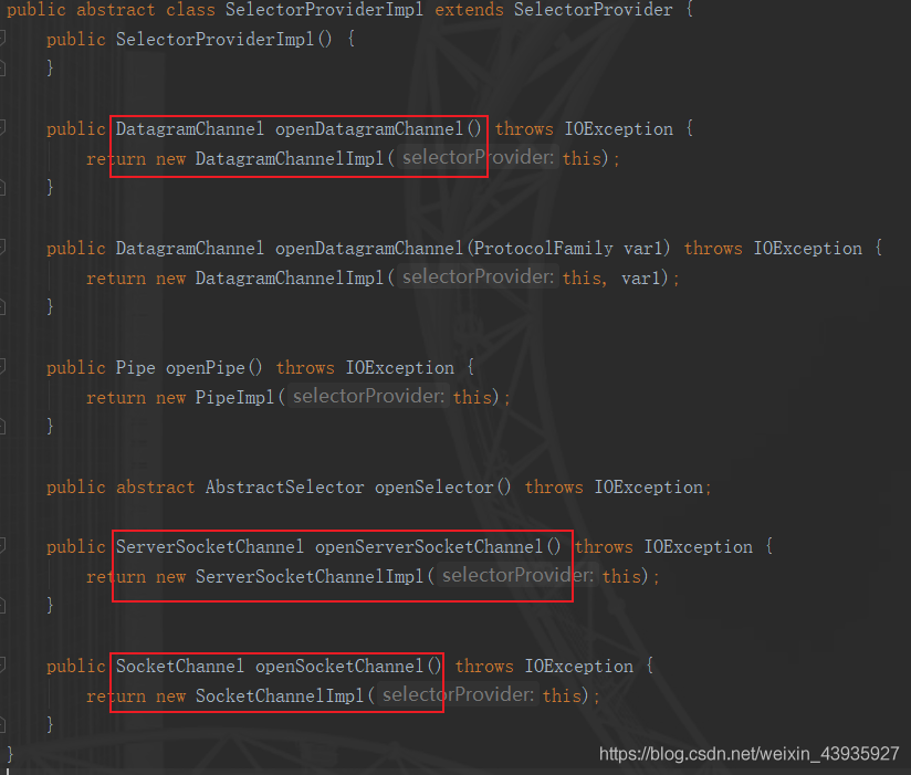 这里再多说一句,SelectorProviderImpl 中还提供了客户端的 SocketChannel 和读文件 DatagramChannel