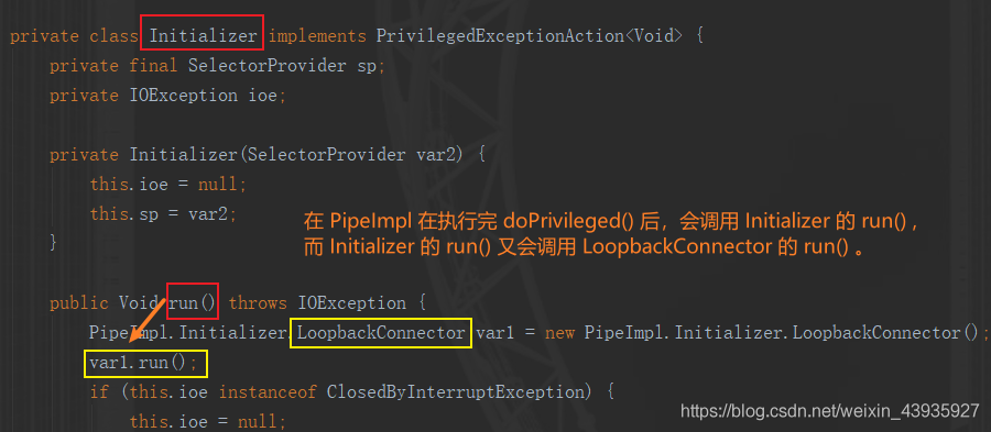 如果这两种情况都没有发生,那么 poll0() 就一直阻塞,也就是 selector.select() 会一直阻塞;如果有任何一种情况发生,那么 selector.select() 就会返回,所以在 OperationServer 的 run() 里要用 while (true),这样就可以保证在selector接收到数据并处理完后继续监听poll()。
