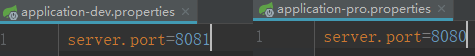 1)创建两个新的配置文件,application-dev…properties 和 application-por…properties,分别代表正式环境和开发环境的配置。在这两个配置文件中,分别把启动端口设为 8081 和 8080