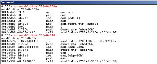 根据上述分析我们可知函数调用关系(mso.dll版本为11.0.5606.0),如图6所示。mso.dll版本为11.0.8172.0时的情况如图7所示。